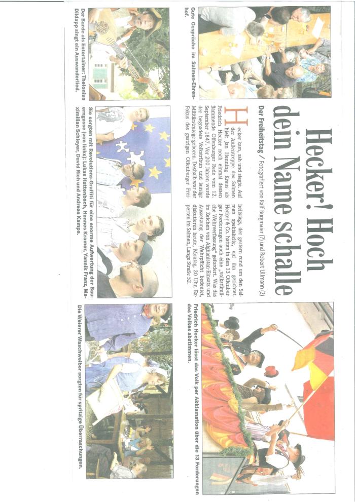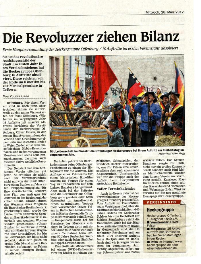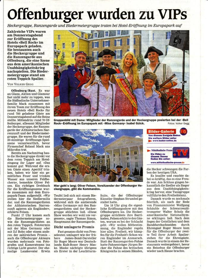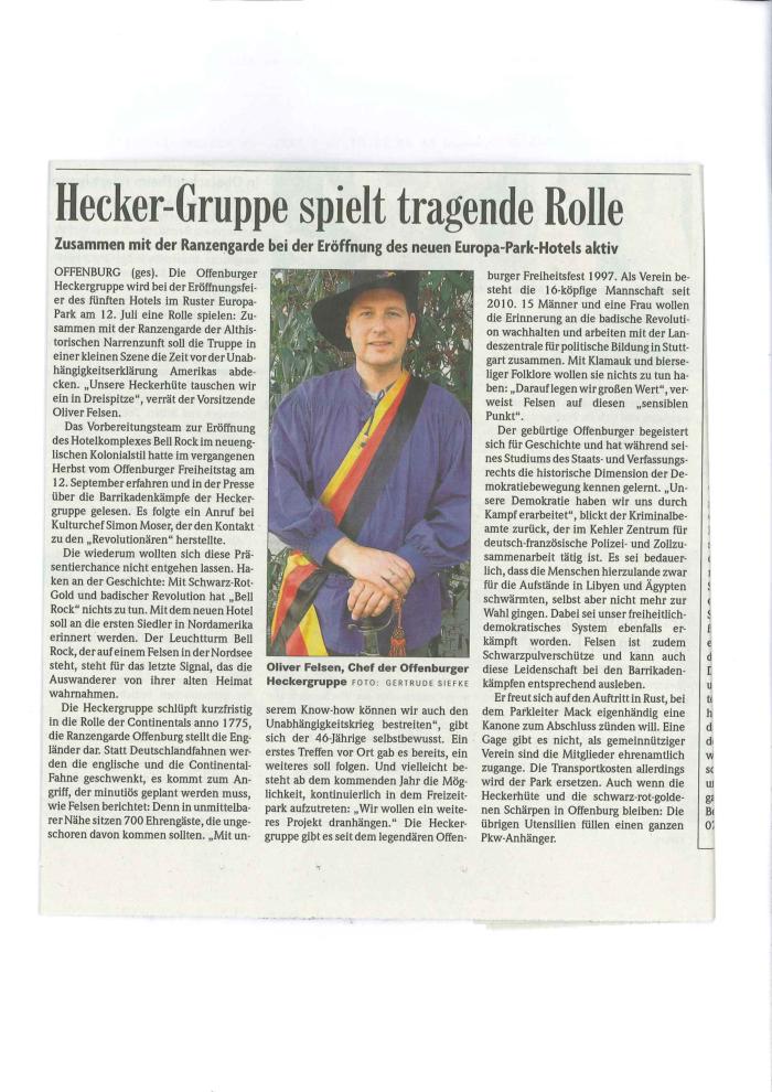 Die Heckergruppe bei der Einweihung des “Bell Rock” Hotels im Europa ParkWissenswertesDie Forderungen des VolkesWas wurde von den Freunden der Verfassung am 12. September 1847 in Offenburg gefordert?Friedrich HeckerChronologie eines Revolutionärs.Der RevolutionskalenderZeitreise durch die Revolution mit Vorgeschichte.Offenburg - Wiege der DemokratieEine Stadt als Symbol - strebend nach Freiheit, Recht und Einigkeit.PresseechoHeckergruppe Offenburg / 1. Aufgebot 1849 e.V2010/20112012/20132014/20152016